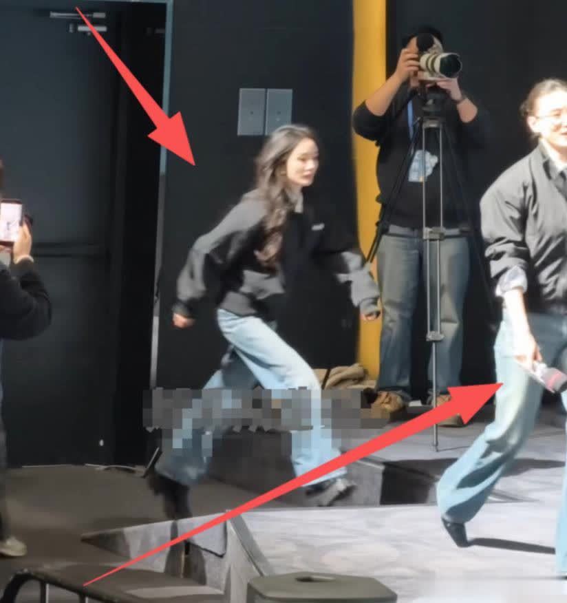 杨幂的速度快到,媒体的镜头还没跟上来,身体就出镜了。