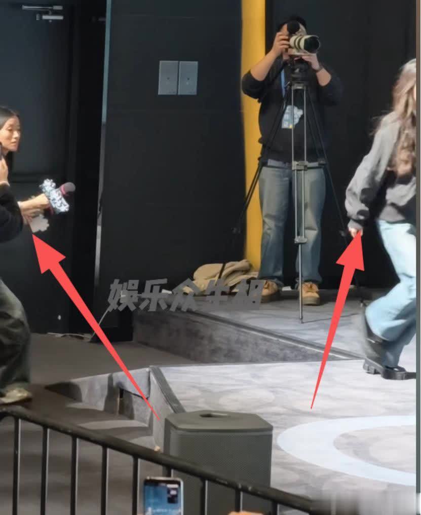 而门口负责递话筒的长直发工作人员,都没来的及把话筒递到她的手中。