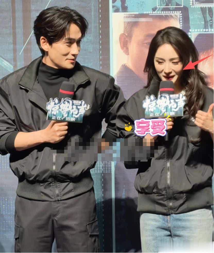 在娇羞的表情下,杨幂肿胀的苹果肌上线了。