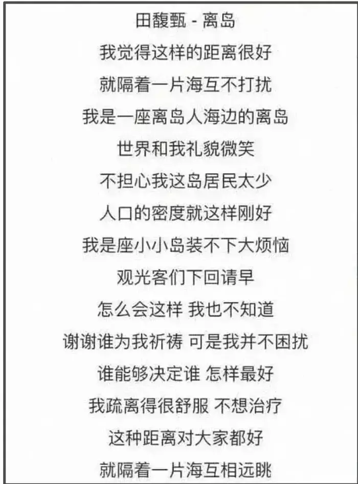 在田馥甄、周杰伦歌词找细节的时候,要不要分析一下田馥甄演唱的《离岛》歌词是什么意思呢?