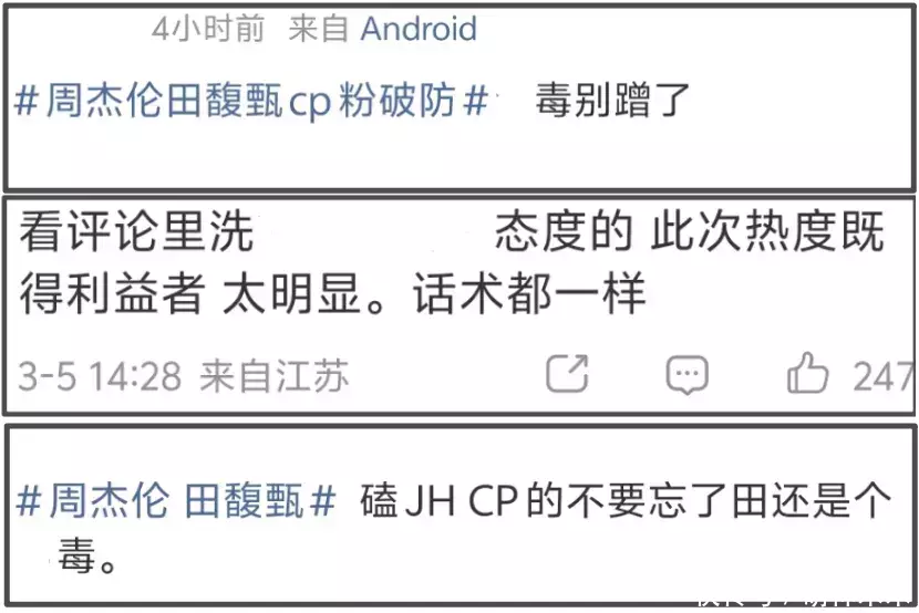 周杰伦发限定动态带着老婆昆凌秀恩爱,对JH恋上头的网友瞬间破防,转过头指责周杰伦和昆凌利用田馥甄炒作,还有一部分网友终于清醒了,意识到自己又一次成了为明星提供免费热度的工具人。