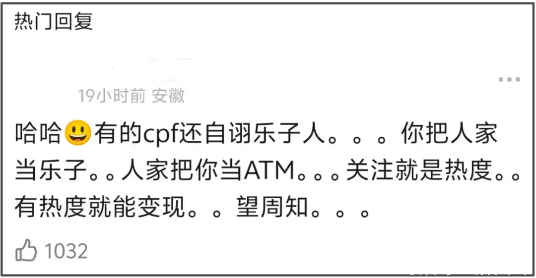 当然了,可能有人觉得无所谓,反正自身不花钱,我给你提供免费热度用来赚钱,你给我反馈情绪价值用来打发时间,双赢嘛!