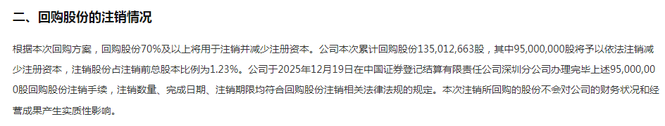 回溯公告可知,从董事会决议通过到回购股份注销,本轮“50—100亿A股回购案”的完成历时不到九个月。